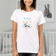 Camiseta personalizável e encantadora para um chá de fraldas de menino com uma cegonha fofa com abelhas e borboletas em um campo. Um fundo pastel macio, e no seu centro uma cegonha branca, graciosamente ilustrada, carregar um belo pacote embrulhado num pano macio. Ao redor da cegonha, algumas abelhas brincalhonas com sorrisos amigáveis e uma borboleta sobre si, acrescentando um toque animado à cena. Nuvens macios e fofos adoram o céu. Celebre a chegada iminente do novo bebê com este chá de fraldas temático de cegonha fofo. Esta ilustração transmite uma sensação de alegria, calor e antecipação festiva do mais novo membro da família. Personalize o item com suas informações. presente de excelente para uma futura mãe.