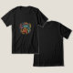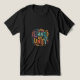 A design da camiseta apresenta a frase "Terra da Unidade" em letras vibrantes e multicoloridas. Ao redor do texto estão girando, padrões abstrato que simbolizam unidade e diversidade. A design transmite uma sensação de interconectividade e harmonia, celebrando a riqueza de diferentes culturas e a importância de se unir como comunidade.