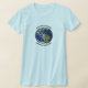 Esta camiseta faz um ponto de vista atencioso. O planeta Terra em destaque é cercado pelas palavras "inteligentemente desenhado, imperfeitamente mantido". A camiseta é mostrada como azul claro, mas você pode escolher outra cor.