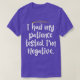 A t-shirt chegou dentro do tempo anunciado e apresentou-se com todas as características que estavam anunciadas. Boa qualidade do tecido e bons acabamentos. O tamanho veio conforme o pedido. Perfeita! Fiz apenas uma pequena personalização no texto, e o mesmo assim veio, bem como todo o restante texto, devidamente impresso e exactamente como estava anunciado na página. Sem falhas!