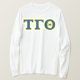 Camiseta de manga branca longa com letras de marinho e contorno amarelo.