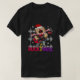 Esta camiseta preta mostra um gato cartoon vestindo um chapéu de Papai Noel e um cachecol, tocando um violão elétrico vermelho. O texto "ROCK & ROLL" é impresso por baixo do gato numa fonte colorida e estilizada. Flocos de neve e gráficos semelhantes a ondas sonoras rodeiam a imagem central. Esta design é divertida, festiva e perfeita para amantes da música.