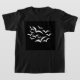 Esta camisa infantil apresenta uma coleção de imagens simples de morcegos voando juntos em uma nuvem. Os morcegos são brancos e o fundo é preto. As crianças adoram essa design bonitinha. A design é mostrada em uma árvore preta para crianças, mas também está disponível em uma variedade de cores e estilos diferentes de roupas para crianças, bebês, mulheres e homens.