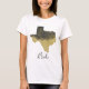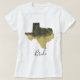 Uma design de casamento divertida para o Texas Bride, esta t-shirt branca apresenta uma imagem de folha de papel preto e dourado do Texas. Escolha entre uma variedade de estilos de camisa diferentes para toda a família. Faça seu pedido hoje mesmo!
