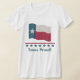 Senhoras, mostrem o vosso orgulho do Texas quando estão a comprar, a trabalhar ou a sair e com isto por toda a design na frente da vossa camiseta. A arte original é uma bandeira vermelha, branca e marinho azul do Texas Lone Star. Palavras personalizáveis dizem "Texas Proud" mas você pode personalizar com um nome ou outras palavras. Uma borda inferior é uma linha vermelha com estrelas azuis abaixo dela e um espaço para as palavras está embaixo da design. As palavras personalizáveis "Texas Proud" podem ser facilmente alteradas para outras palavras ou um nome, pessoal ou um nome comercial. Personalize para torná-lo seu. Os produtos de coordenação estão disponíveis para ajustado de outras atividades da sua vida.