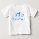 Texto azul camisetas irmãs T-shirts, fatos-macaco, fatos de futebol, camisas de suor, chapéus, capuzes de bebê, capuzes de pulôver, fatos orgânicos, camisetas de manga compridas e outros roupas para crianças, bebês, e bebês que leem "Irmão Pequeno"! Adicione facilmente o nome do irmãozinho abaixo do texto para personalizar!
