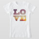 Amor geométrico em roxo, violeta, rosa, laranja, amarelo em saco. Palavra de amor