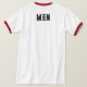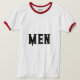 Texto ou Nome de Homens ou Palavra com Texto a Cor Preta e O Estilo é Camisa-T de Ringer Básica, O tipo de Cor é Branco/Vermelho e o Tipo de Tamanho é Adulto 2X.