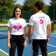 Esta t-shirt branca apresenta um design surpreendente na sua frente, com pás vívidas, cor-de-rosa e azul, de pickleball atravessado. As cores contrastantes pop contra o pano de fundo escuro, criando um visual dinâmico. Posicionado acima das pás é uma área de texto personalizável, permitindo que a personalização torne a camisa exclusivamente sua. Voltando ao fundo da camisa, você encontrará um toque personalizado que adiciona um talento especial. O nome do jogador aparece elegantemente em branco vibrante, enquanto o número do jogador aparece de forma destacada em um tom de cor-de-rosa em negrito. Esses detalhes personalizados não só acrescentam um toque personalizado, como também contribuem para a estética geral da camisa. No geral, esta t-shirt oferece uma forma na moda e personalizável de expressar o seu amor pela picleball. Seu design pensado combina cores vibrantes com elementos personalizados, fazer-o uma peça de destaque para entusiastas do esporte. Quer você esteja no campo ou fora, esta camisa é uma declaração em moda da sua paixão por picleball.