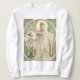 The color palette is restrained and harmonious: soft creams contrast with muted greens, while delicate linework defines both figures and ornament. The overall effect is serene and slightly timeless, part mythic portrait, part pastoral allegory.
