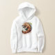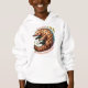 O capuz de criança apresentando uma imagem de Theo juntamente com seu nome e a frase "o pangolim globetrotting".