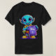"Esta design divertida e peculiar apresenta uma brilhante alienígena azul de desenho animado com olhos grandes e amigáveis e um sorriso alegre, segurando uma camiseta lisa roxa. A alienígena também veste uma camisa amarelada e calçados amarelos com sotaques vermelhos. Este personagem brincalhão tem uma aparência leve e envolvente. Essa design é perfeita para uma variedade de produtos, especialmente aqueles relacionados à roupa ou que exibem um estilo divertido e imaginativo. Imaginem-no em roupa, sacos de tote, autocolantes ou designs para lojas de mercadorias online."