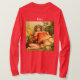 Fada loira de olhos azuis abraçando um grande cogumelo amanita para personalizar com sua própria saudação, nome, mensagem, etc