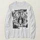 Pop Art Tiger Face Elegante, A Face Moderna De Tigre Modelo Significa Uma Camiseta Básica De Cinza De Folha Longa.