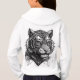 Uma ilustração digital da cabeça de um tigre futurista, fundindo a majestosa essência desse grande gato com elementos de tecnologia avançada e design imaginativa.