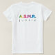 Camiseta branca ASMR Junkie para aqueles que amam a sensação de formigueiro no seu cérebro induzida por certos sons ou toques. Um texto colorido com outras cores do arco-íris em uma t-shirt branca.