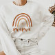 Esta camisola da mamãe apresenta um arco-íris retrô boêmico com um sol e uma fonte manuscrita fofa. Este golpe faz o presente perfeito para anunciar que você está esperando ou dando como presente para a melhor mãe da sua vida. 💜 CORES SÃO EDITÁVEIS! Clique em 'editar design' para alterar as cores.