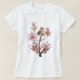 Num galho de uma pequena árvore florescente com pétalas delicadas, o minúsculo fino canta.
