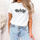 Esta moda, simples camiseta, mostra a palavra "noiva" na tipografia retrô-negra, junto com um espaço para seu nome.