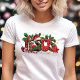 Celebre o verdadeiro significado do Natal com esta linda camiseta "Jesus". O design festivo apresenta o nome de Jesus adornado com um chapéu de Papai Noel, bengala de Natal, azevinho e outros elementos natalinos, criando uma mensagem alegre e cheia de fé. Esta camisa é perfeita para expressar seu amor por Jesus durante a temporada de festas e compartilhar o motivo da celebração. É um presente maravilhoso para amigos, familiares ou qualquer pessoa que queira manter Cristo no centro do seu Natal.