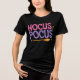 Hocus Pocus Pink Purple Halloween Typografia Womens Tshirt apresenta o texto "Hocus Pocus" na tipografia roxa e rosa moderna, acentuada com uma vassoura. Perfeito para festas de Halloween. Projetado por feriados do Evco www.zazzle.com/store/evcoholidays