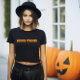 Camisa de Halloween projetada para professores, com a frase brincalhona "Professor Wicked" exibida na tipografia laranja vibrante. Esta camiseta é uma maneira perfeita de os professores celebrarem a estação assustadora com um olhar divertido e festivo. A design mostra com destaque as palavras "Professora Má" em uma fonte laranja atraente, fazer claro que esta camisa é destinada a educadores com senso de humor durante o Halloween.