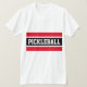 Este design de diversão apresenta grandes letras esportivas dentro a uma faixa preta larga destacada com listras brancas contra um fundo vermelho brilhante. As cores e o texto PICKLEBALL neste design de modelo podem ser personalizados.
