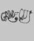 A imagem apresenta o texto 'Grind It Out' em uma fonte no estilo de giz. A tipografia tem um design de cor-de-rosa que flui.