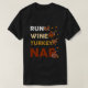 Mantenha-se confortável e na moda neste Dia de Ação de Graças com esta camisa de manga longa e humorística que inclui um design lúdico de peru a correr com uma garrafa de vinho. Perfeito para o seu janto festivo e sono com refeições postadas.