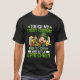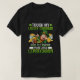 Esta design apresenta a frase "Toque meus encantos sortudos e eu vou sufocar seu pequeno duende" com um duende e potes de ouro no meio da design, em uma camisa-T básica de homens.