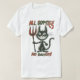 Um gato negro malicioso, sorridente, carregando um tridente vermelho num estilo de desenho animado lúdico e antigo. A ilustração ousada e peculiar é complementada pelo texto humorístico e elegante "Todas as Oópsias, Sem Visitas" em cores gradativas, misturando vermelhos e verdes. A design combina uma atitude devilista, mas caprichosa, irradiando um charme rebelde com uma noda lúdica aos "oopsias" na vida.