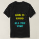 o grande t-shirt 2X preto para homens com o provérbio, "deus é bom," na parte dianteira e, "todo o tempo," na parte traseira.
