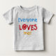 Um bonito, um divertimento, um design de texto colorido em t-shirt, uns bodysuits, uns t-shirt do raglan, uns chapéus, uns vestidos sem mangas, umas camisas e uns vestidos do plissado, uns bodysuits orgânicos, umas camisolas, uns hoodies do pulôver, uns t-shirt escuros, e o outro roupa que lê todos amam-me com texto de azul, de vermelho, e o ouro.