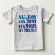Camisa engraçada diz do que os meninos são feitos: 10% de sujeira, 40% de barulho e 50% de problemas!