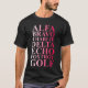 Tonalidades largas do alfabeto fonético tipográfico cor-de-rosa A para Alfa através de G para Golf, como utilizado pela polícia, NATO, etc. Diversão sobre a tendência das camisetas gráficas.
