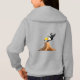 Um tucano de desenho animado com plumagem a preto e branco e um bico amarelo são tocados em um toco de árvore marrom contra um fundo branco. Um tucano de desenho animado é empoleirado em uma árvore verde esmagadora, com o texto "Parou de cortar madeira. Salve-nos" sobrepostos, sugerindo um apelo pela conservação.