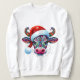 Camiseta Touro de Vaca de Natal com Santa Hat Arte Foliar M