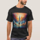 design de arte surreal com cores vibrantes, retratando menino cercado por prédios coloridos. Perfeito para mostrar visuais imaginativos e sonhadoras, essa design combina elementos brancos com ousadia