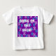 A camiseta desta criança tem uma mensagem de vinho, com um design de flocos de neve azuis e brancos sobre um fundo roxo. Excelente de Natal ou qualquer hora no inverno!