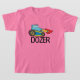 Os miúdos, os bebês, e as crianças que amam veículos grandes da construção, especialmente a escavadora, amarão este design da escavadora em t-shirt, em bodysuits, em camisetas longas da luva, em chapéus, em camisolas, em hoodies do pulôver, e no outro roupa. Caracteriza uma escavadora do azul, do aqua, do vermelho, do verde, e do ouro com texto preto que lê a escavadora!