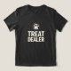 Feita para o melhor amante de cachorro — aquela que sempre tem um cheio de guloseimas. Um presente perfeito para mães de cães, pais de cães, ou qualquer um que responda alegremente a "aquele com os petiscos." Com um gráfico robusto e angustiado "Tratar o Revendedor" e uma impressão em pata ousada, é uma maneira divertida e retardada de mostrar a sua obsessão por animais de estimação. Excelente de dias de parque de cachorros, roupas casuais, ou horário confortável do sofá com seu filhote, esta camisa é igual conforto de partes e orgulho canino.