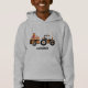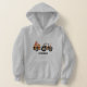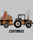 Esta design de outono tem um trator de xadrez de búfalos laranja e preto, puxando um trailer com abóboras. Sentada em cima das abóboras está uma coruja laranja brilhante. O texto na parte inferior pode ser personalizado.