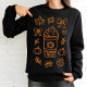 Um rabisco queimado, desenhado à mão, de um café gelado com chantilly no topo, decorado com uma abóbora e a frase "picada de abóbora". Cercado por folhas, arcos, e rabiscos de queda, este design aconchegante é perfeito para amantes de café e para a temporada de Ação de Graças. Um suéter estético de outono quente para roupas e presentes de outono.