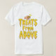 The image features a bright and cheerful design with the phrase "TREATS FROM ABOVE" written in large, dripping yellow letters. At the top, there is an illustration of a hand holding a bone-shaped treat, emphasizing the idea of giving treats to dogs. The black background makes the yellow text and illustration stand out vividly.