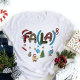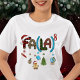 Professora Natal Fa La School Educational Divertimento As T-Shirts de mulheres exibem um texto festivo "Fa (La)" destacado com um chapéu de Papai Noel, árvore de Natal, globo, maçã, pão de gengibre e material escolar. Perfeito para professores para festas de Natal e presentes de Natal. Criado por feriados Evco www.zazzle.com/store/evcoholidays