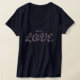 Palavras de amor feitas de flores de camiseta Flores de Palavra AMOR. Esta camiseta na moda apresenta a palavra "AMOR", feita de lindas flores silvestres de vassoura em tons de azul, roxo, rosa e amarelo com lindas folhas verdes. Adicione seu nome ou monograma ou qualquer texto pessoal.