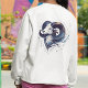 Esta moda e camisola moderna apresenta uma brilhante representação aquática do símbolo astrológico Aries representado pelo aríete poderoso numa elegante combinação de preto, azul, roxo, ouro e marfim. Preferir um estilo diferente? Sem problemas! Escolha seu estilo, tamanho e cor e, em seguida, use a caixa Editar à direita, fácil e rapidamente personalize o design: personalize o nome, altere a fonte ou adicione uma frase ou citação favorita.