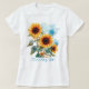 Três girassóis de aquarela são como o sol contra um céu azul vibrante com o texto "Country Girl". Mantenha o texto, remova-o ou adicione o seu próprio texto.