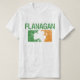 Um t-shirt que caracteriza um trevo branco, verde, e alaranjado irlandês afligido com o sobrenome Flanagan.