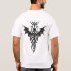 A sleek and symmetrical tribal emblem featuring a stylized dragon or wyvern silhouette. The design is characterized by sharp, elongated points and elegant, curved linework that forms the dragon's head and body. Large, spread bat-like wings extend from the center, all rendered in a smooth, dark obsidian texture